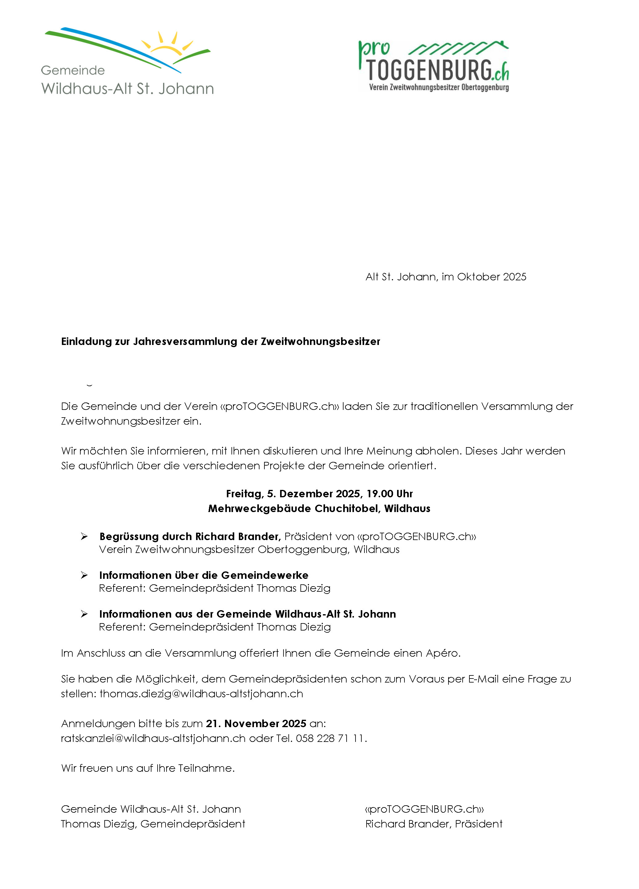 Jahresversammlung der Zweitwohnungsbesitzer 2025